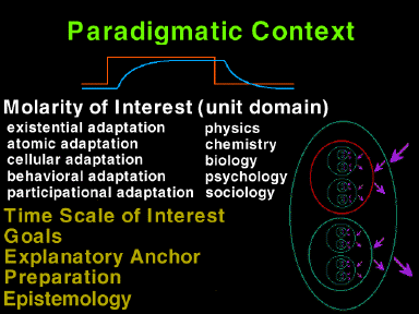 We study behavioral adaptation, the change in behavior as a result of a change in the environment. Other research at successively more molecular levels could investigate cellular adaptation, atomic adaptation, or even the adaptation of existence itself. A more molar question could involve how proportions of a population come to participate as the result of some independent variable.
